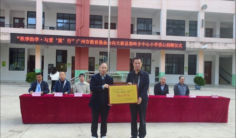 核心环节中,广州市教育基金会副理事长张强、刘定锐分别向两所学校递交爱心捐赠牌。广西民族教育发展基金会理事长韦兰明为广州市教育发展基金会颁发“爱心单位”牌匾及公益捐赠证书,表彰其对教育公益事业的热心支持。两校校长分别代表学校致谢,承诺将妥善使用捐赠资金,不负社会重托。堪圩乡中心小学学生代表农同学还以真挚话语表达了感恩之情。