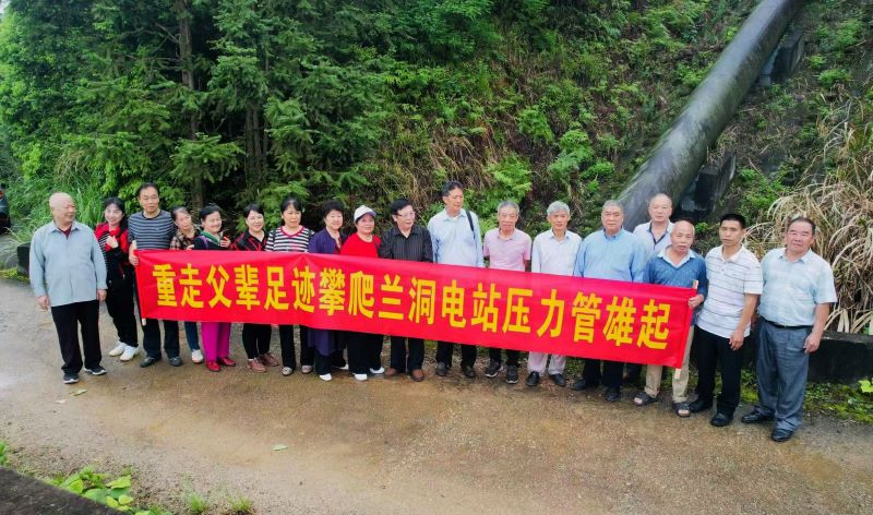 赵进忠(右三)与当年的建设者在参观兰洞电站。郑智敏 摄