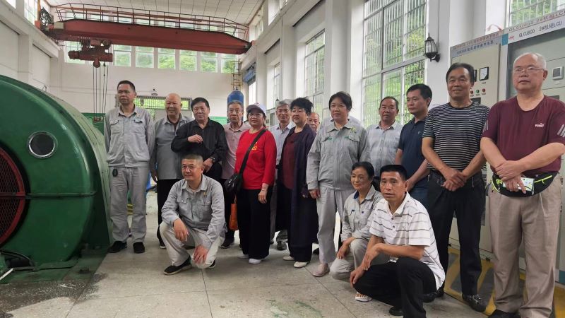 赵进忠(右二)与当年的建设者在参观兰洞电站。郑智敏 摄
