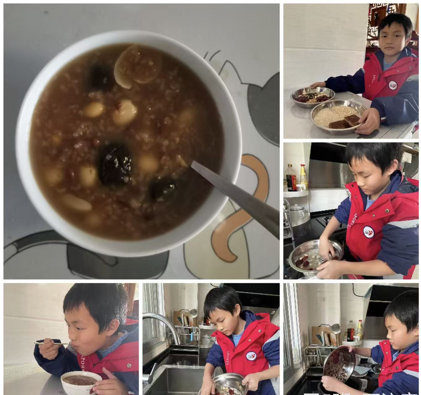 五年级的学生亲手挑选食材、洗切、煮粥。他们积极参与熬制腊八粥的过程,亲身体验传统工艺的独特魅力。在热气腾腾的氛围中,感受着腊八粥带来的温馨与喜悦。